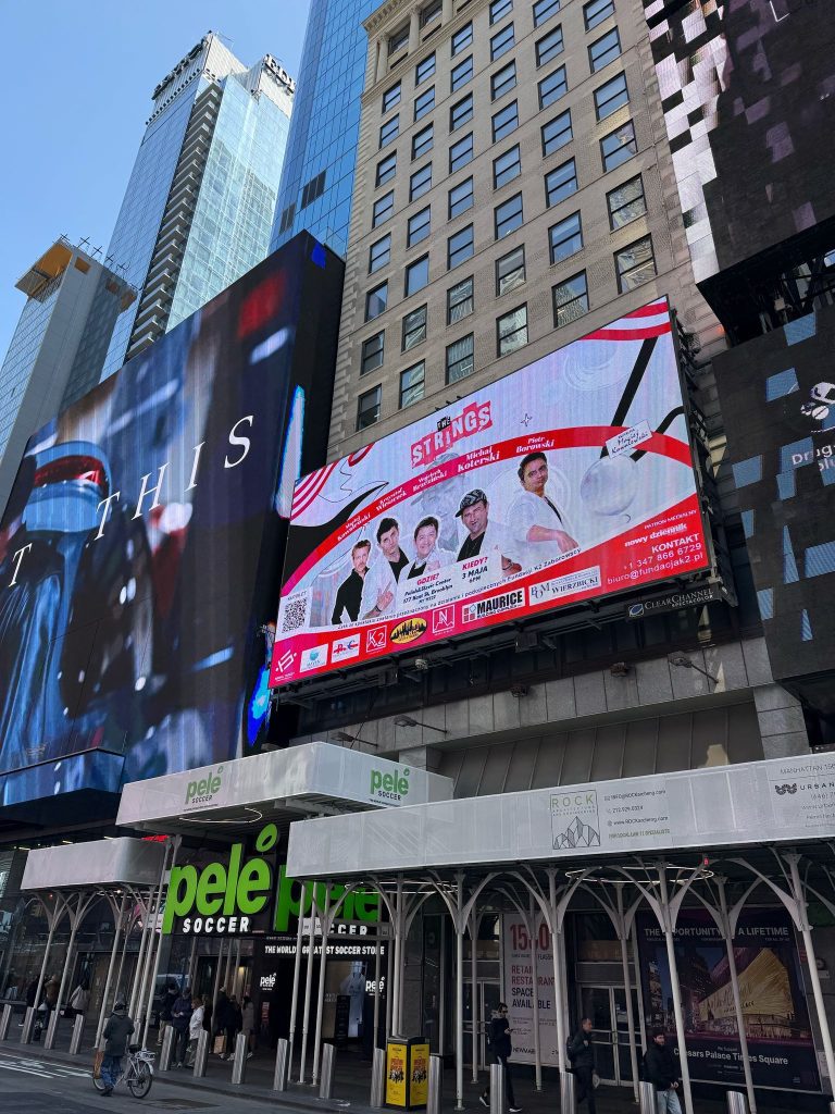 Realizacja oprawy graficznej wydarzenia “The Strings” z udziałem znanych polskich aktorów. Projekt, który dotarł na Times Square w Nowym Jorku!